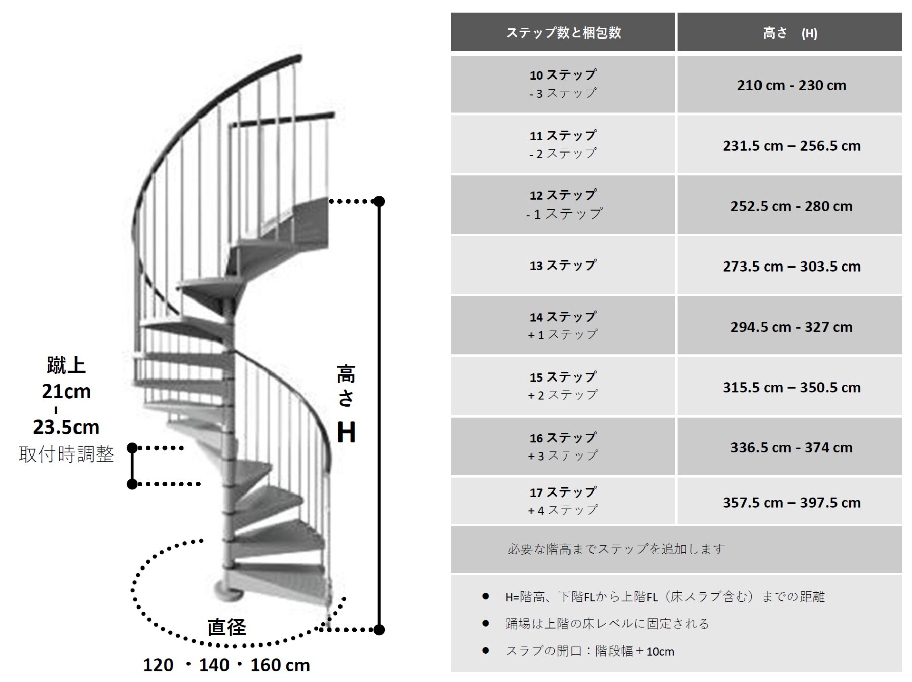 ※オプションのステップを追加し、必要な階高(最高17段上りH397㎝)まで対応可能