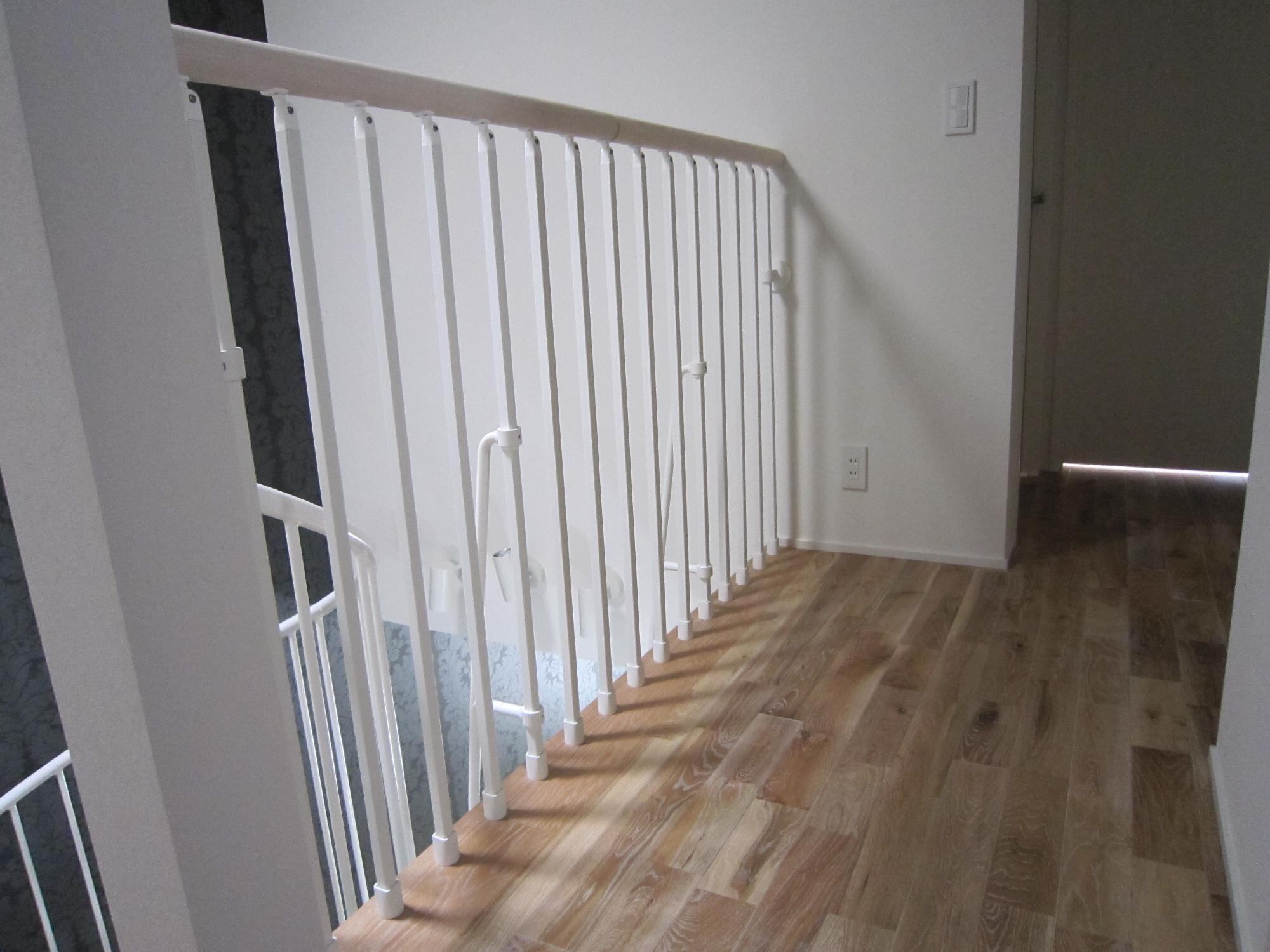 手摺:アッシュ材の美しい木目を生かしたホワイト系(ブリーチド色)